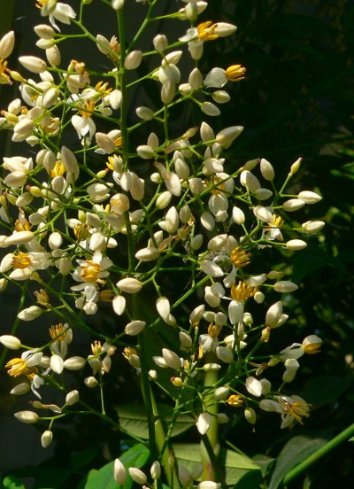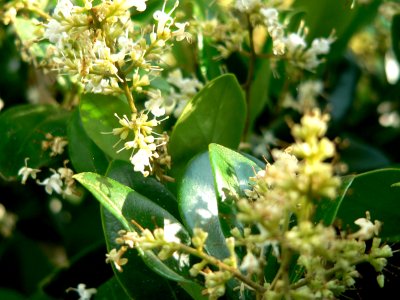 Of the olive family and an evergreen and has large quantities of black colored berries. Opposing side stems.