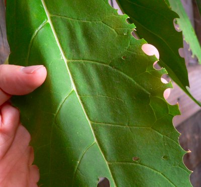 Smooth, but ruffled, edge on the leaf is normal despite the effects of artistic bugs.
