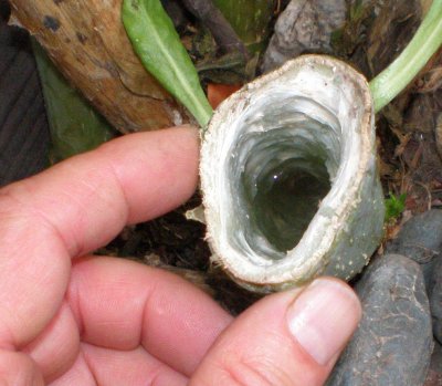 The fruit matures inside the flower at the same time flowers are present on the bunch.