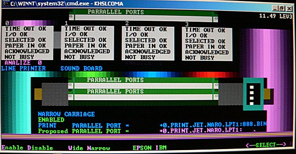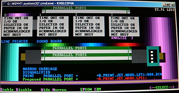 The printer port shows either "DISABLED" or "DISQUALIFIED" or "ENABLED"