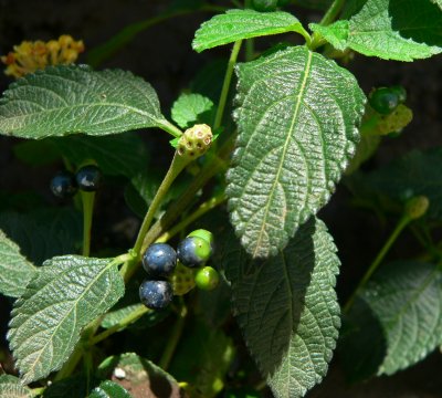 Lantana berries are edible when ripe (black).
